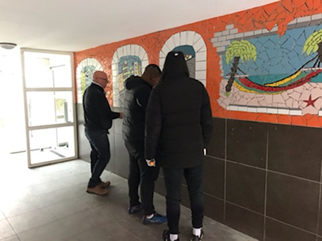 9 jeunes de la cité Allende de L’Ile-Saint-Denis, encadrés par deux éducateurs, ont conçu et réalisé une fresque en mosaïque.