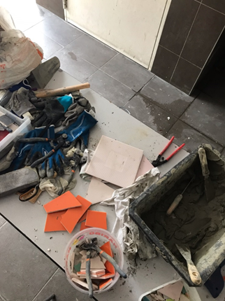 Parlons à présent du plan esthétique. Le matériel choisi est ici la mosaïque, d’une part, pour rester dans le thème et avoir une cohérence avec le mur de la première entrée et, d’autre part, pour que toutes personnes volontaires aient leur part de travail dans ce projet donc une trace de leur réalisation ».