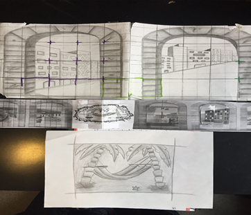Sur le plan idéologique, l’idée est ici de créer une sorte de trompe-l’œil avec les bâtiments qui vont vers le fond. Plus nous avançons, plus nous allons dans la profondeur.